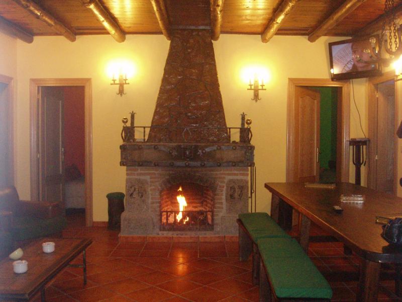 PRESENTACIÓN Y DESCRIPCIÓN DEL ALOJAMIENTO- Casa de campo situada a 700metros de la villa, es una finca en la q podemos encontrar una gran barbacoa de leña rodeada de bancos y mesas de rueda de molino, todo ello bajo grandes árboles y tinajas decorativas dotado de una bonita iluminación nocturna, 700metros cuadrados de encanto pera disfrutar de una agradable velada.- Gran salón rustico con techo de madera y decorado con motivos de caza , en el que se encuentra una gran chimenea de leña, mesa para 12 comensales, tresillo, cómodos sillones, TV-plasma para pasar unos inolvidables momentos.- Desde el salón se accede a los dormitorios de llamativos colores.